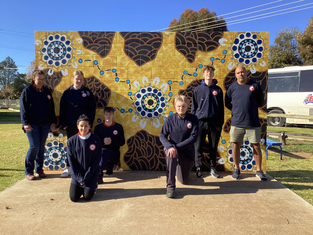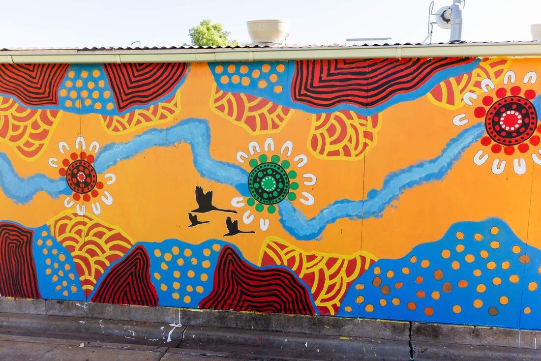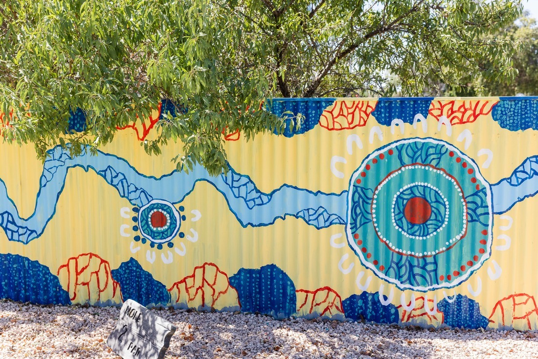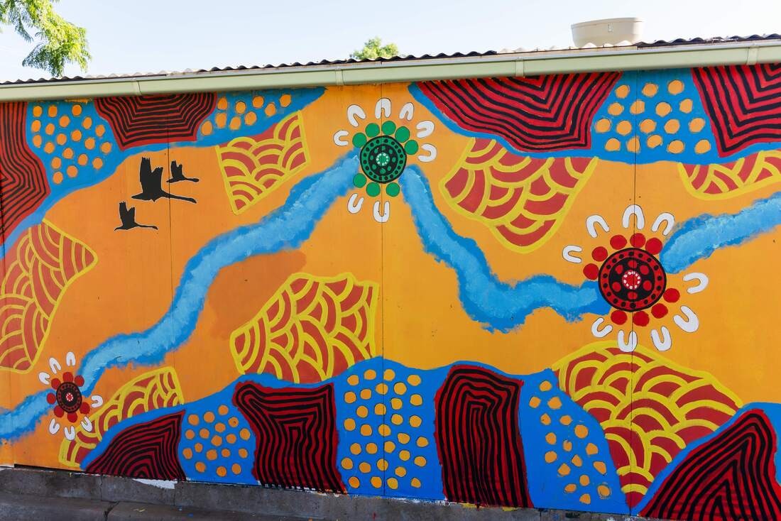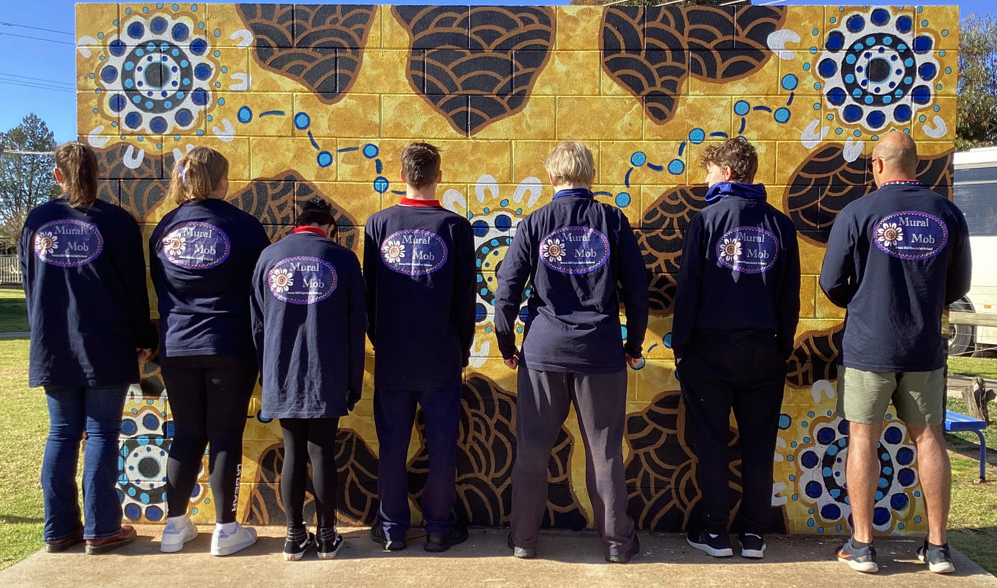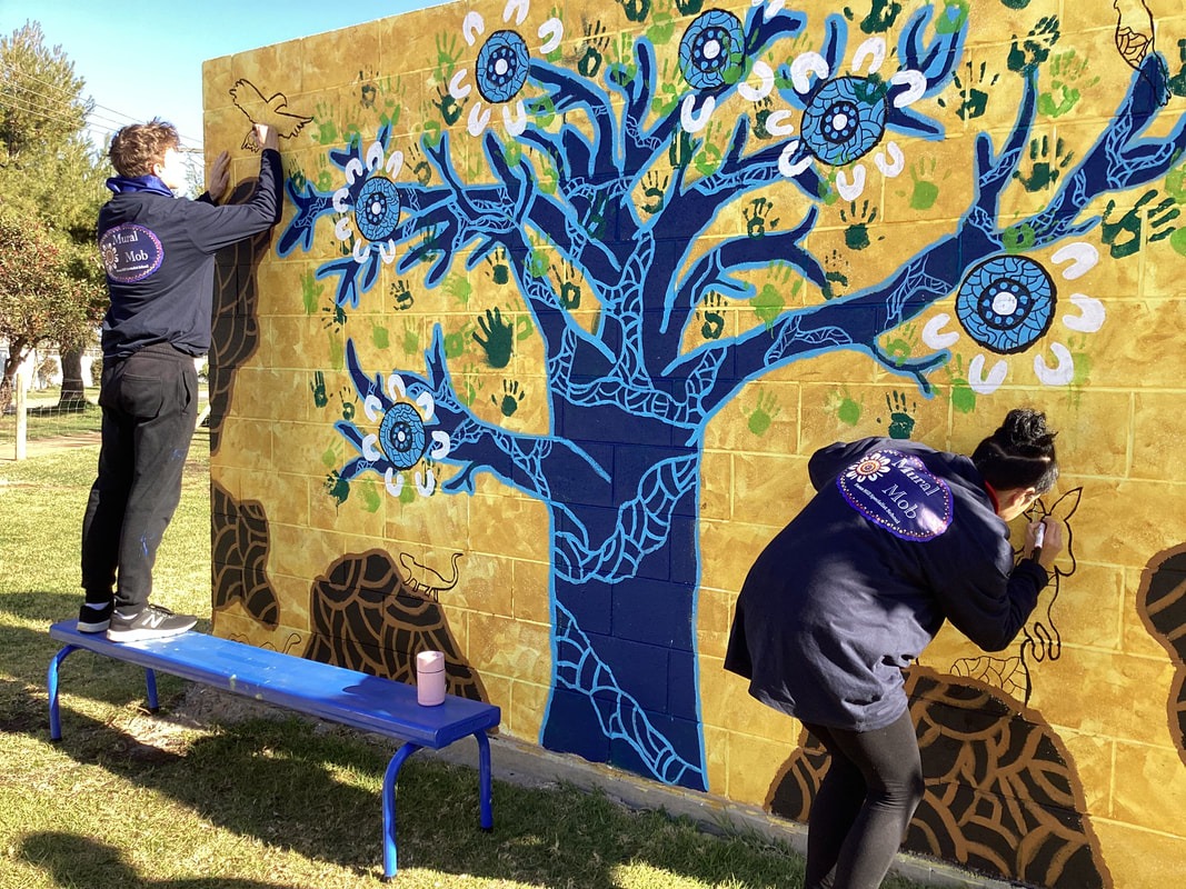 Mural Mob is a program in which our students create murals utilising storytelling through Indigenous art to express their journey. These murals are organised with local schools and businesses, planned using digital design before the painting begins. See our previous projects below.