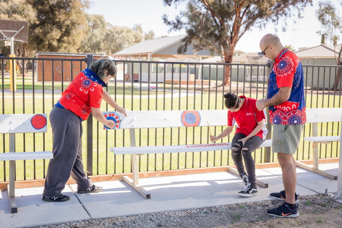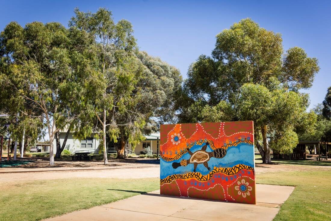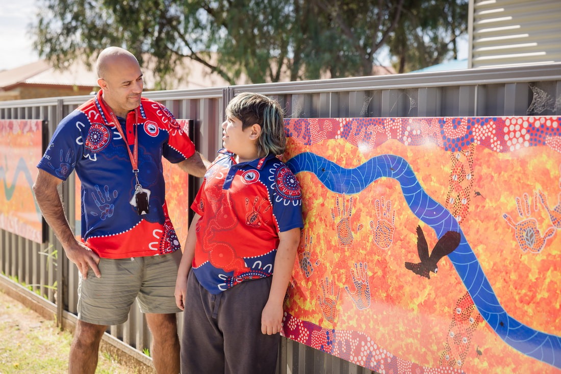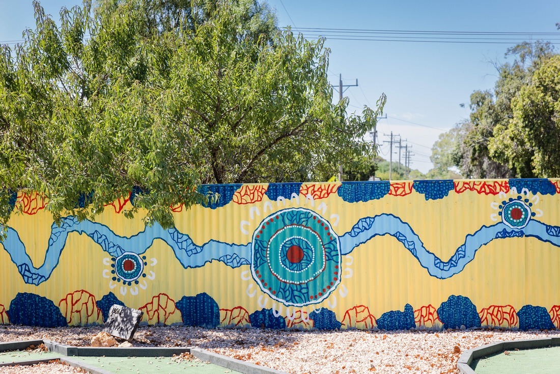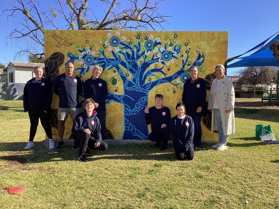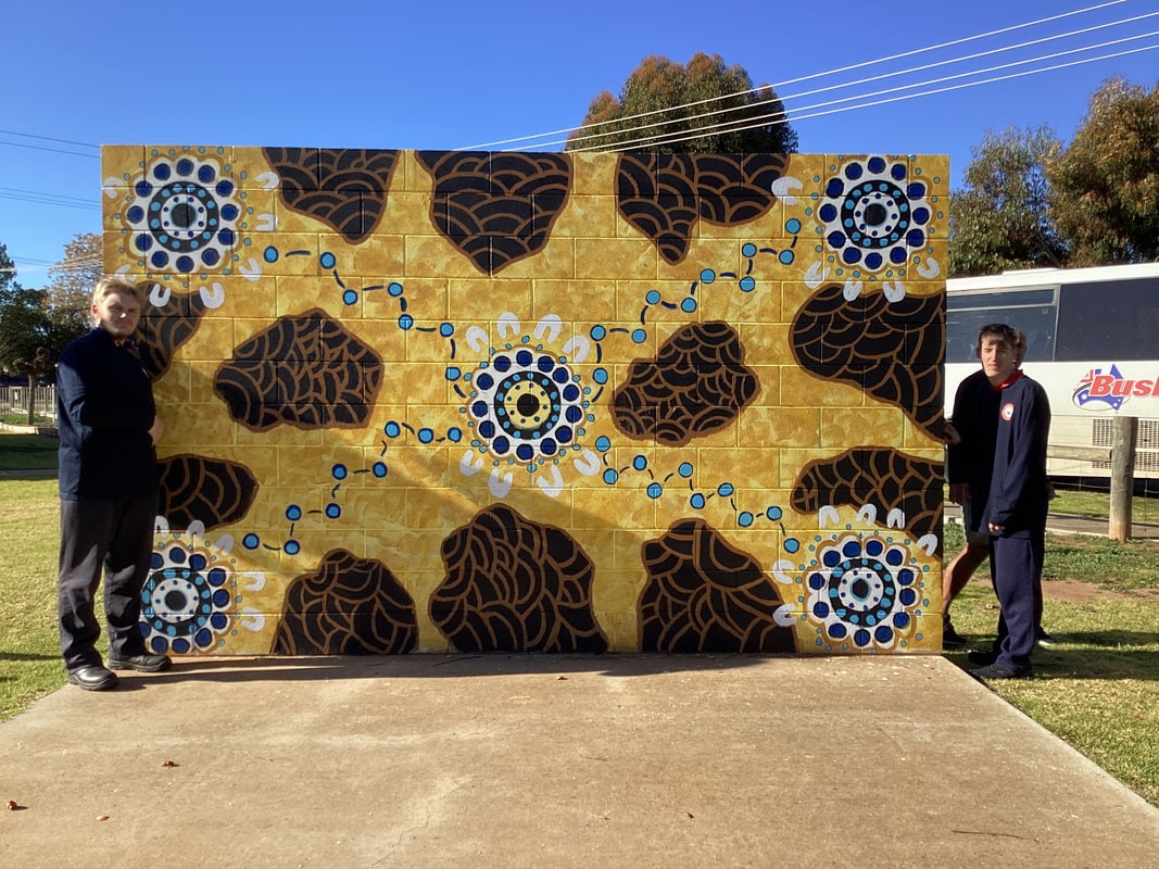 Mural Mob is a program in which our students create murals utilising storytelling through Indigenous art to express their journey. These murals are organised with local schools and businesses, planned using digital design before the painting begins. See our previous projects below.